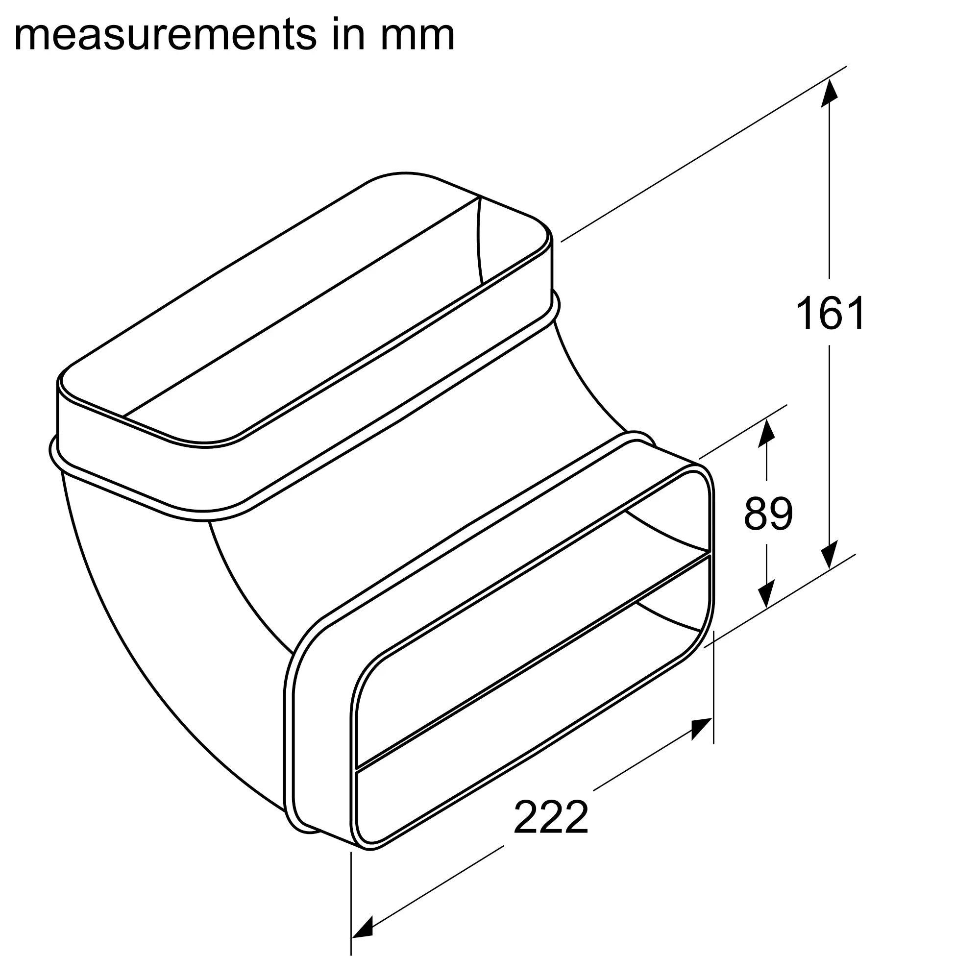Flat duct 90 ° vertical L